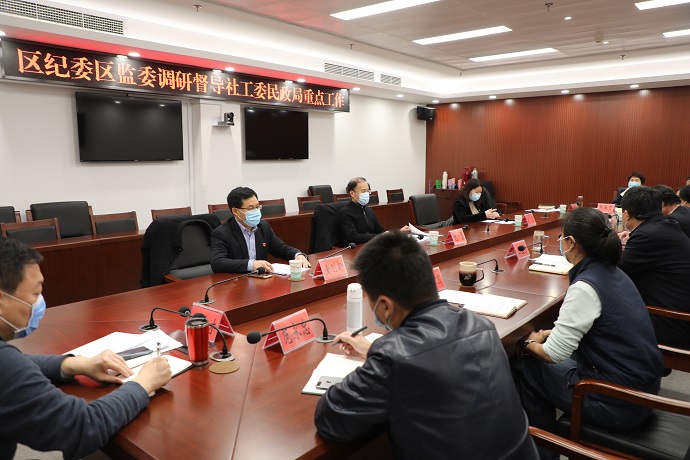 3月12日下午,海淀区委常委、区纪委书记、区监委主任鲍雷一行,来到区委社会工委区民政局检查指导疫情防控工作,并看望慰问奋战在抗疫一线的干部和工作人员。区纪委常委、区监委委员、办公室主任陈璐,区纪委区监委宣传部部长黄创新随行。