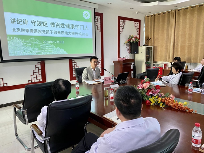 2020年12月,海淀区卫生健康工委、卫生健康委深化开展“讲纪律 守规矩 做好百姓健康守门人”主题教育暨“旗帜领航 纪律护航”廉政教育月活动,北京四季青医院认真履行主体责任,以理论学习为引领,广泛开展正面典型教育、反面警示教育、专项整改等系列活动,教育引导广大党员干部自觉锤炼忠诚干净担当的政治品格、为民务实清廉的优良作风,确保廉政教育月活动取得实效。