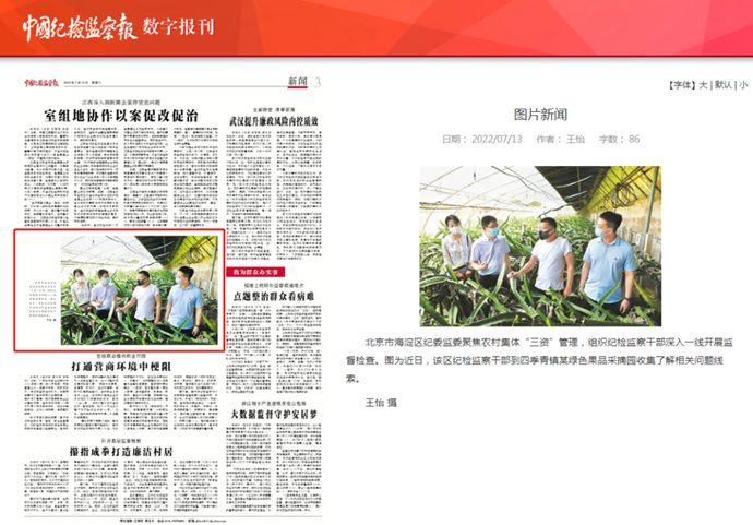 北京市海淀区纪委监委聚焦农村集体“三资”管理,组织纪检监察干部深入一线开展监督检查。图为近日,该区纪检监察干部到四季青镇某绿色果品采摘园收集了解相关问题线索。王怡 摄