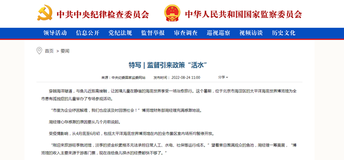 太平洋海底世界博览馆的经营困难也是众多企业在疫情中都会面临的困境,更是全市各级纪检监察组织监督护航“经济要稳住”的“问题导向”。