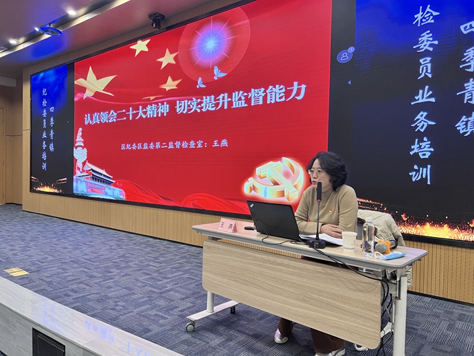 为加强基层纪检委员队伍建设,打通全面从严治党向基层延伸的“最后一公里”,11月8日,四季青镇召开2022年纪检委员述职交流暨业务培训会,切实提升纪检委员履职能力,严防基层“微腐败”。海淀区纪委监委第二监督检查室主任王燕应邀到培训班进行授课。