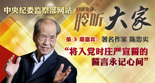 陈忠实:在我的意识里,正在进行的反腐败工作稳健而又有震慑性力度,可以说正当其时,大得党心人心。从已经揭露和惩治的腐败分子的构成来看,各个领域各个行政级别的握有权力的人都有,任谁都会感知腐败现象的严重。尤其是个别党的高级干部的腐败,让我震惊到几乎不可理喻的状态,自然也很直接地想到对党的危害了。