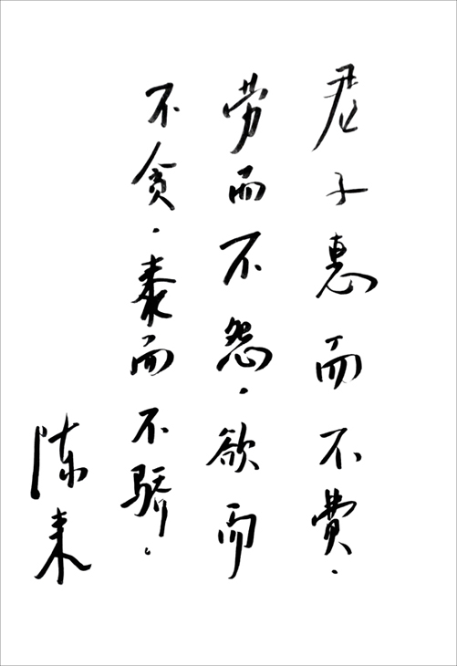 陈来:“惠而不费、劳而不怨、欲而不贪、泰而不骄”。这是孔子在《论语》里提出的,可以看作是对干部“美”的要求。“惠而不费”,为政者做对人民有利的事情,成本不高,又可以得到人民的拥戴,何乐而不为;“劳而不怨”,有些干部很辛苦,但是劳而不怨,“我付出再多是为党工作,我是国家的公务员”;“欲而不贪”,人可以有欲望,但不能有贪心、贪欲;“泰而不骄”,就是不要骄傲自满。这些在今天仍然有针对性。(采访整理 景延安 冯国刚)