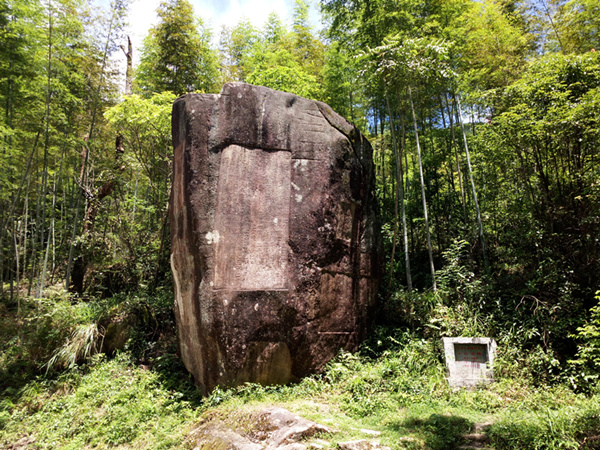 “平茶寮碑”是王阳明率军剿灭“山贼”的纪功碑,翔实记载了当时王阳明剿灭“山贼”的真实过程和他当时刻碑的用意。石碑高8米、宽4米,距今有500多年历史。由于岁月磨砺,碑文字迹已斑驳模糊,但岩石西侧的“纪功岩”三个大字还清晰可见。