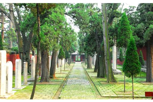 在孟子故里山东邹城,有一座孟庙,又称亚圣庙,为历代祭祀孟子之所。庙内古木森蔚,碑碣林立,庙周围有红墙护围,总面积65.3亩。