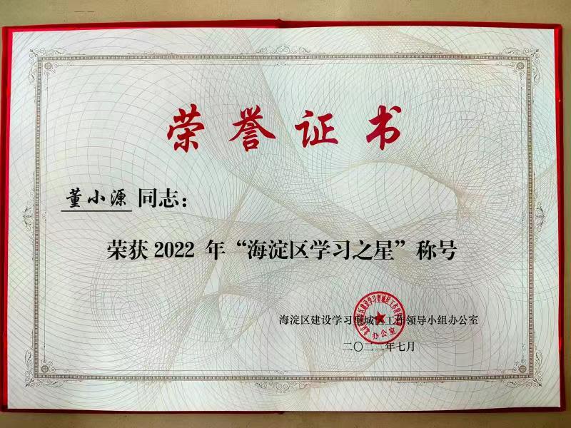 董小源同志2014年参加工作,2017年12月从丰台城管选调进入海淀区纪委区监委,先后从事派驻纪检监察工作与组织人事工作。几年时间,从城市执法者到监督执纪者再到组织人事干部,岗位和角色经历了几次转变,但是对学习的热情依然如故。始终坚信唯有不断夯实履职内功,才足以扛起工作所要求的责任担当。